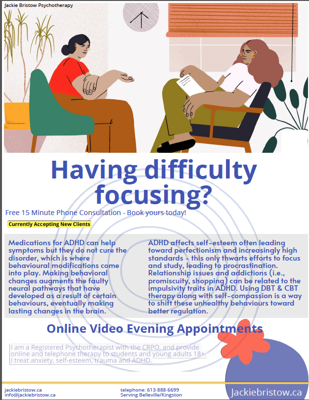 exposure therapy , therapist , OCd , psychotherapist , adhd therapist , dbt , Anxiety , emotionally focused thearpy , adhd , borderline personality disorder , trauma therapist , anxiety therapist , trauma therapy , depression , counsellor , online therapy , cbt , ptsd , PTSD therapist