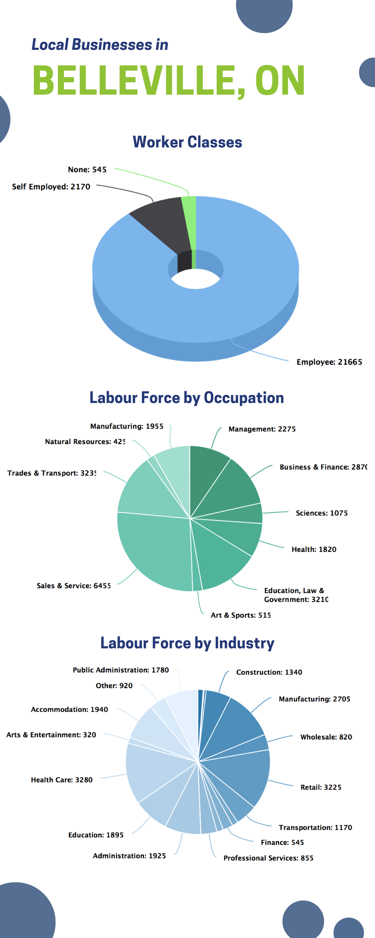 Approximately 9000 people work in the manufacturing and industrial sectors, which are the city's primary economic drivers. Magna International, a manufacturer of automotive supplies, a manufacturer of household and personal care goods are among the many industries in Belleville.